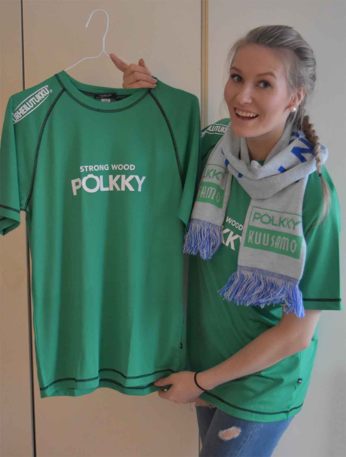 Kalentereita ja fanipaitoja on myynnissä Pölkyn ottelutapahtumissa. Hinnat: