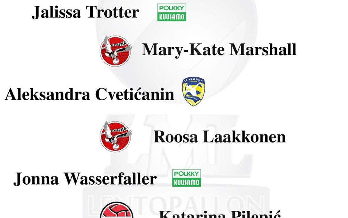Yleispelaajat: Mary-Kate Marshall, LP Kangasala ja Aleksandra Cveticanin, LP-Vampula